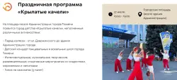 - Спектакли, танцевальные номера и выступления творческих коллективов на улице (если позволят погодные условия на момент проведения).