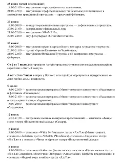 - Праздничный концерт, где будут выступать творческие коллективы, местные исполнители, представители эстрады – один из традиционных элементов на день рождение Магнитогорска.