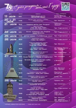 В текущем году юбилейный день рождения в Волжском будет отмечаться с размахом. Основные события запланированы на четыре дня, датой празднования считают 13-28 июля. Программа мероприятий на день города в Волжском состоит из семейных гуляний, спортивных состязаний, а также выступления звезд российской эстрады. Завершит праздник в Волжском красочный салют.